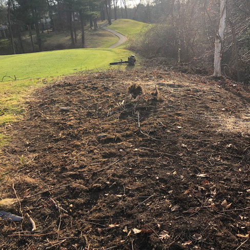 Cleaning stump shavings on the 4th hole as conditions allow.