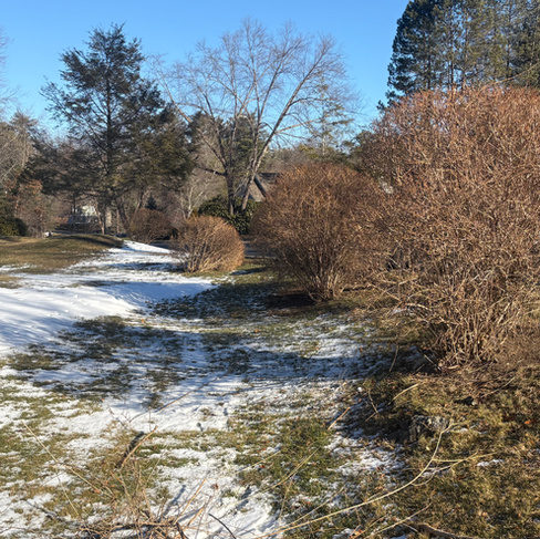 Even with light snow cover at times we have been able to clear out a few areas off our winter brush clearing list. These areas are smaller spots where brush/shrubs have been removed to improve the aesthetics and increase the ease of maintenance in season. On the 12th hole an area of overgrown brush was removed behind the 12th tee water station. This brush removal exposed some rock features that had been covered. A small tree overhanging the road was also removed at the request of the HOA. In addition the two low hanging crab apple trees between the path and the 12th white/blue tee were also removed. Below are some pictures of the work: